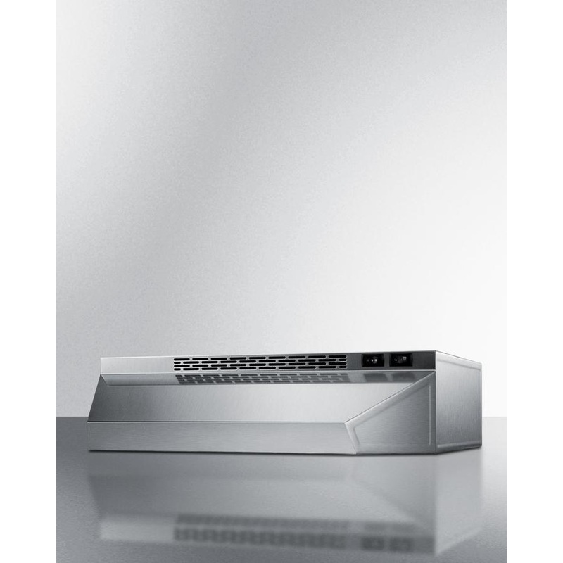 SUMMIT is one of the market’s leading suppliers of quality range hoods, with solid construction and a wide selection of choices for every kitchen. The H1700 series features our best selling range hoods, with ready-to-install designs in ductless (recirculating) style. These hoods offer the features all customers want, including a two-speed fan, switchable light, and aluminum-charcoal filter. The H1718SS is an 18 inch wide range hood with a stainless steel finish. Additional units are available in white and black and come in 20, 24, 30, and 36 inch widths to match most ranges. All H1700 SUMMIT range hoods are made in the U.S.A.
