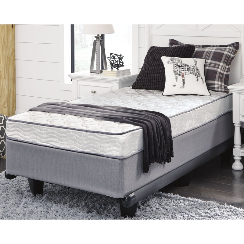 - Includes twin mattress with twin foundation