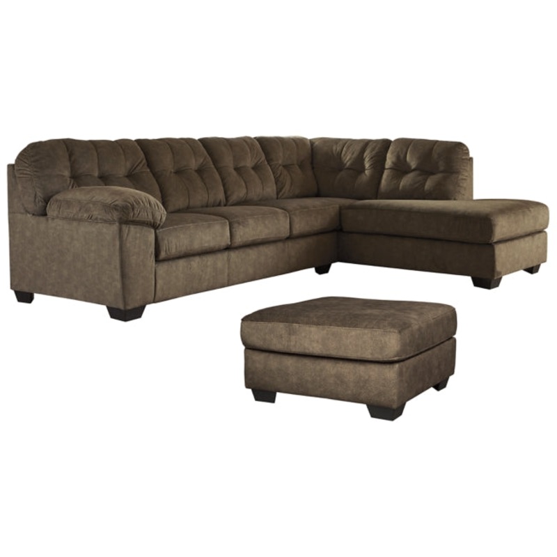 Looking for the perfect blend of decadent comfort and contemporary flair? Feast your eyes on this 2-piece sectional and ottoman. Tufted box cushioning and thick pillow top armrests brilliantly merge style and a sumptuous feel. Wonderfully plush to the touch, the earthy brown fabric is the ultimate choice for a richly neutral look.