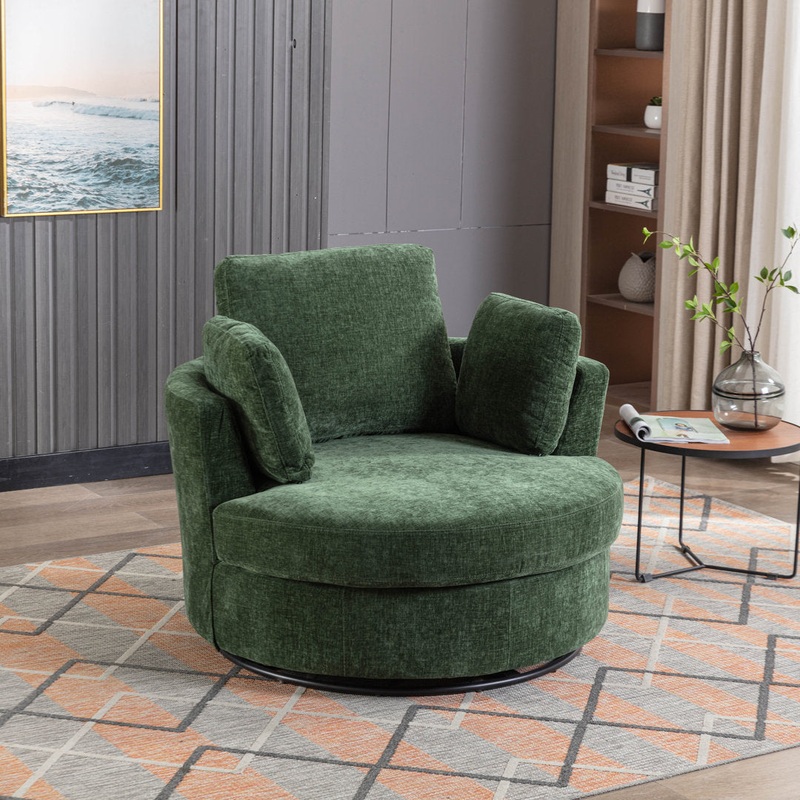 If you are looking for a swivel chair or barrel chair, this accent chair will be a wonderful choice for you. The semi-circular backrest integrated with the armrest and the stable base combines to subtly compose this piece. This swivel barrel chair is tailored to liven up any space. Hokku Designs Fabric: Green Polyester