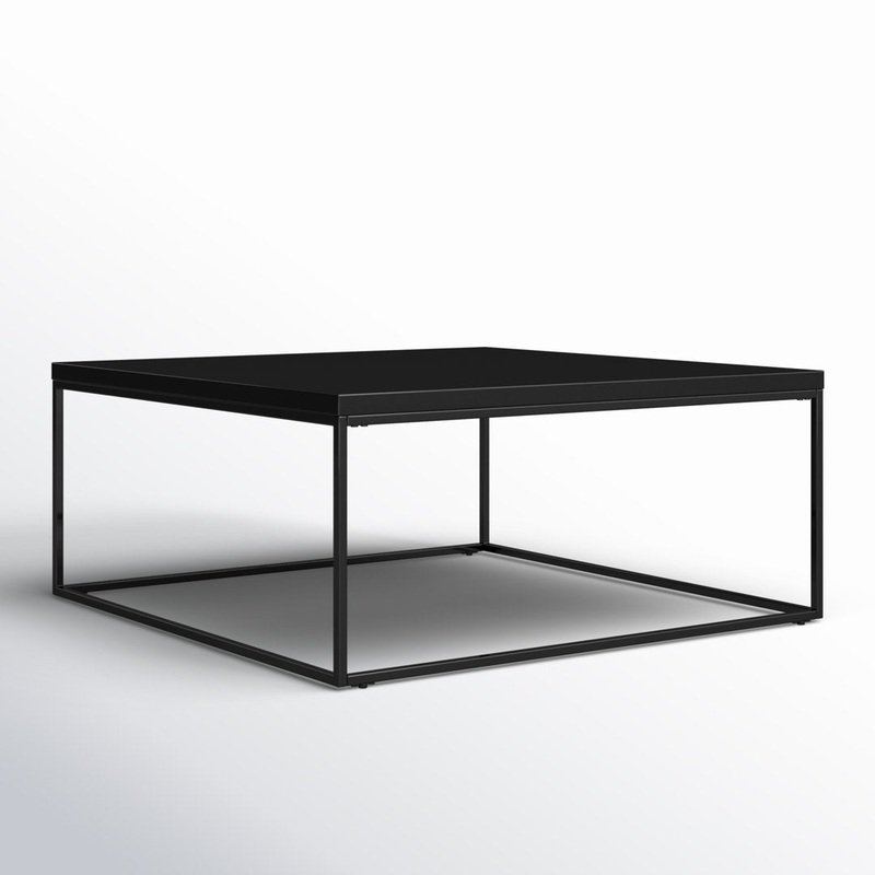 A clean-lined silhouette and an airy frame define this coffee table that’s full of mid-century modern flair. Measuring 35.5″ square, it has an open steel frame base with a brushed finish that stands out in your living room. The tabletop is made from engineered wood with a glossy finish, and it comes in a neutral tone that blends in nicely with a variety of styles and color palettes. This table offers plenty of surface space for laying out snap-worthy appetizers or a tray of your favorite drinks. Full assembly is required, and all tools are included. Wade Logan Color: Black