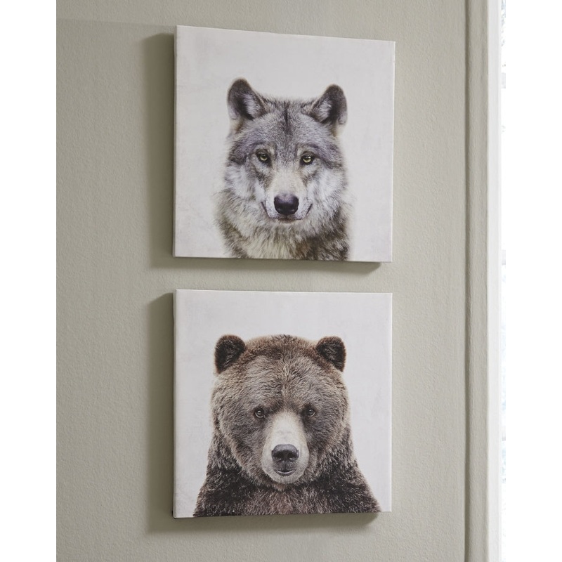 Bring a furr-ocious sense of style to a kids room with this 2-piece wolf and bear wall art set. Gallery wrapped frameless canvas enhances the naturally cool aesthetic.