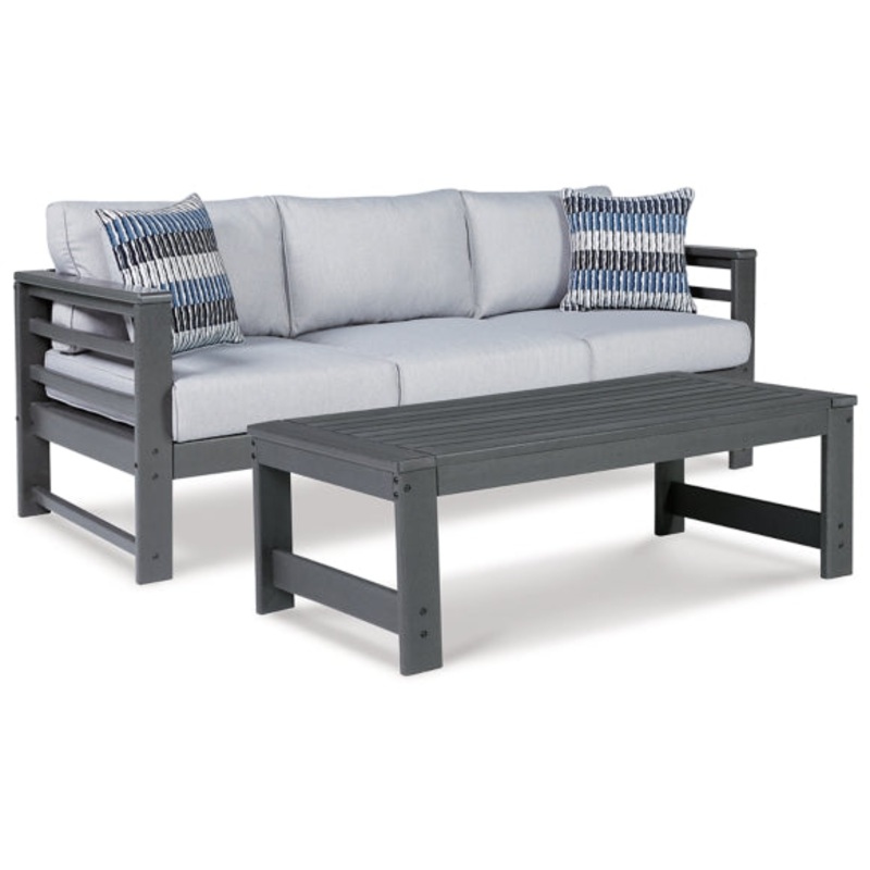 Indulgently comfortable furniture shouldn’t be limited to inside spaces. Create your own outdoor oasis with this seating package. A study in form and function, the trend-right charcoal gray frame is crafted from MEGA TUFF HDPE material for durability and weather resistance. Cushions wrapped in high-performing Nuvella fabric are comfortable and carefree.