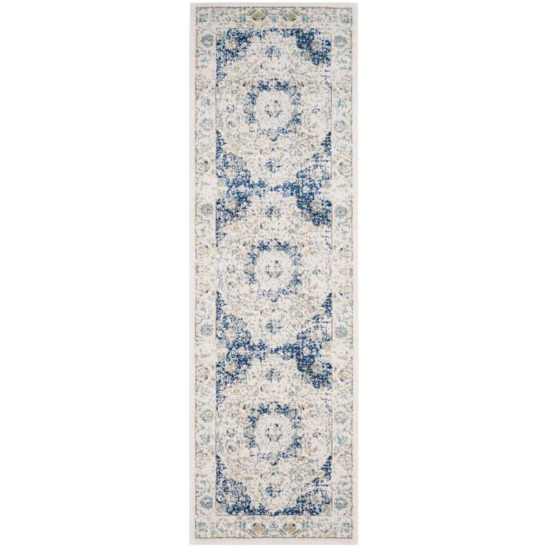 A traditional design gets a trendy update in this ivory and blue area rug, showcasing a faded oriental motif. It’s machine-made in Turkey from stain- and fade-resistant polypropylene and its jute backing is safe for rolling out in rooms with floor heating. Plus, its low 0.37″ pile height is ideal for placing in rooms with high traffic and dining spaces prone to occasional spills and stains alike. This area rug performs best when paired with a rug pad to prevent shifting and sliding underfoot. Langley Street Rug Size: Runner 2’2″ x 7′