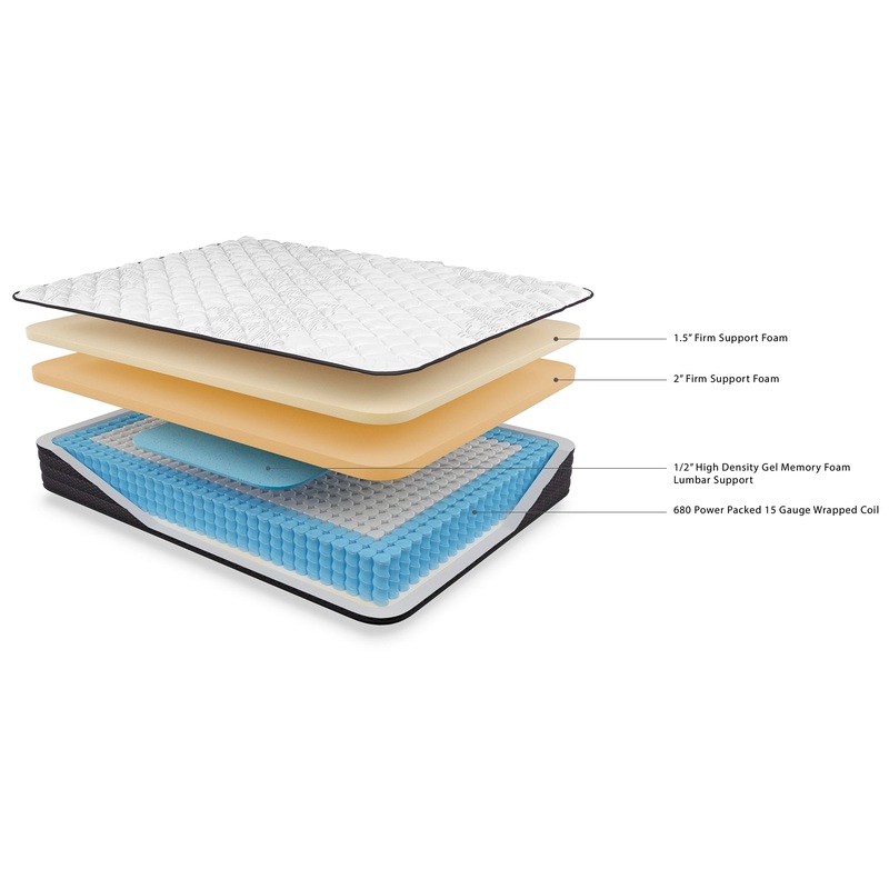 - Mattress with luxury 4-way stretch knit cover; high-density support foam; lumbar gel memory foam; firm support quilt foam; luxury cotton and super support polyester fibers