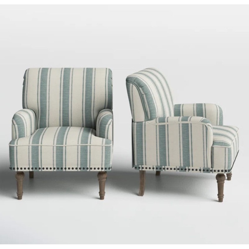 Looking to add an accent chair to your living room or bedroom? This one is in keeping with your glam sensibilities, adding an eye-catching touch to your space. This is the classic and contemporary style accent chair with a slightly slanted backrest, integrated arms, and retro feet. Made with premium 100% polyester skin-friendly fabric, and features an on-trend stripe pattern thats bound to blend in with your color scheme. High-density foam filling with a solid and manufactured wood frame provides comfort and support. The retro turning legs and tapered block legs bring antique design and add to the timeless fashion of this piece. It’s the perfect pick for living room, office room and bedroom.