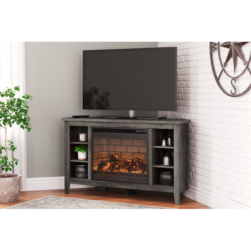 - Includes corner TV stand and electric fireplace insert