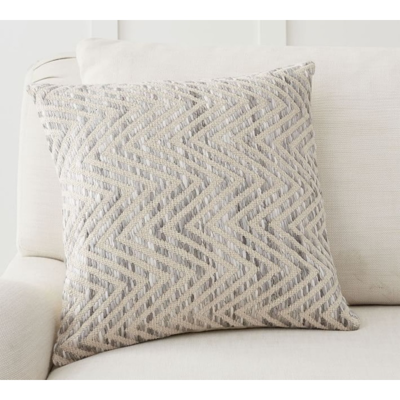 Space-dyed yarns and chevron stripes make our textured pillow cover a classic for contemporary spaces. The varied depths of color complement the highs and lows of the pattern for sophisticated results.Front is made of cotton acrylic; reverse is 100% cotton.Yarn-dyed for rich, lasting color.Reverses to solid ivory.We’re a proud member of the Better Cotton Initiative (BCI). The Better Cotton Initiative trains farmers to care for the environment and respect workers rights and wellbeing. BCI cotton is not physically traceable to final products.To learn more about our environmental commitment click here.Accommodates an 18″ square insert (sold separately).Zipper closure.Spot clean.Imported.