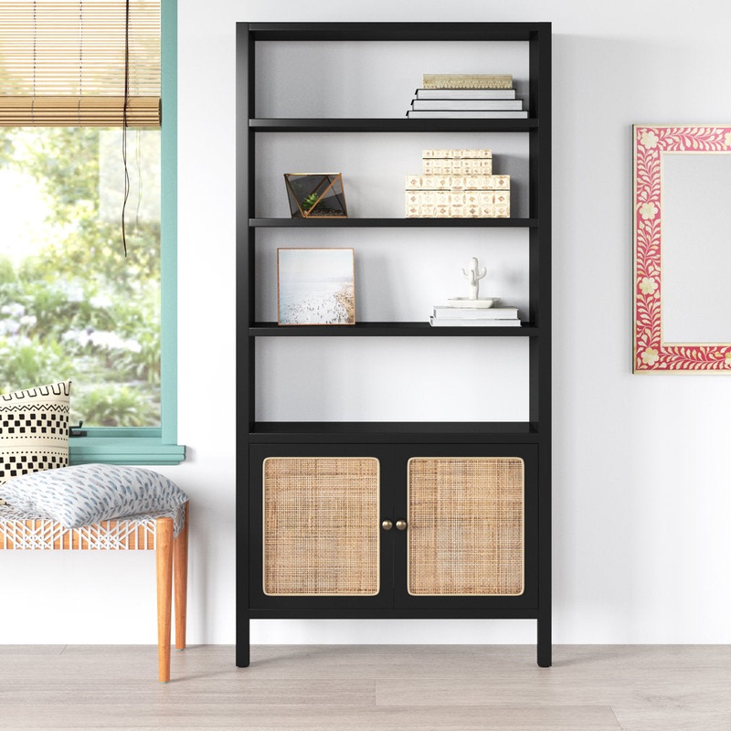 Add stylish storage to your home with this elegant bookcase. It’s crafted from engineered wood in a classic black finish. Four open shelves organize books, photos, or decorative accents while a spacious cabinet keeps clutter out of sight. We especially love the rattan front, which adds a mixed material touch and an airy, beachside-inspired vibe that complements all sorts of different decor styles. Place this tall bookcase in your living room or dining room to display collectibles and board games or add it to your home office to keep office supplies and framed photos organized and on display. Beachcrest Home