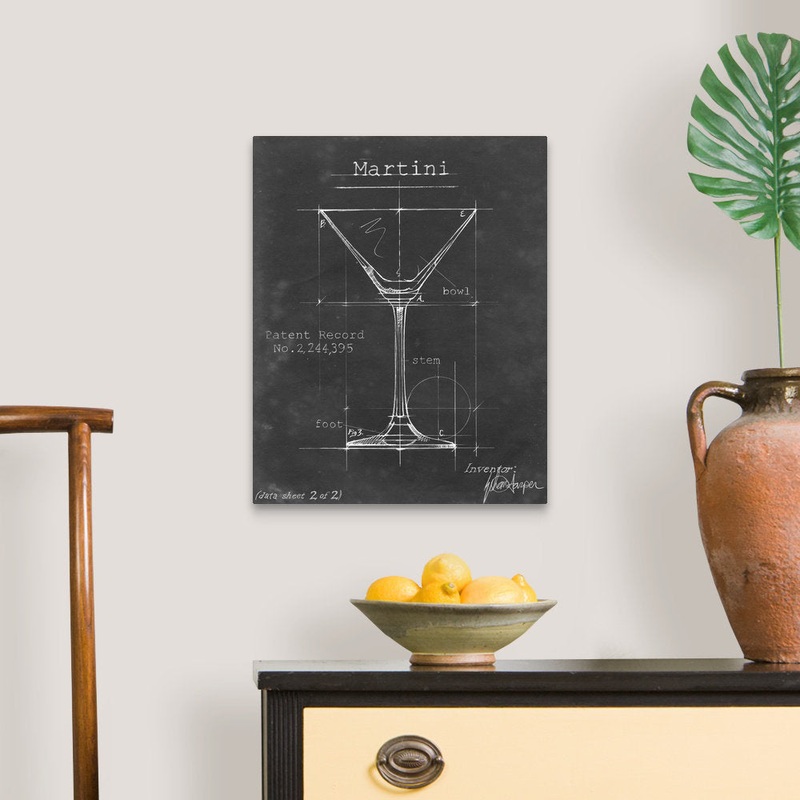 Blueprint style artwork of a cocktail recipe perfect for a kitchen or home bar. The solid-faced canvas is certified museum-grade and designed to withstand the test of time. Durability, image clarity, and color accuracy are the top priorities. Archival inks are used to prevent fading and preserve as much fine detail as possible with no over-saturation or color shifting. Featuring a proprietary design, this canvas produces the tightest corners without any bubbles, ripples, or bumps, and will not warp or sag over time. Additionally, it includes a finished backing with pre-installed hanging hardware that adds an extra level of design. This giclee wall art is sure to become the focal piece of your living room, family room, great room, bedroom, bathroom, office, kitchen, dining room, game room, bar, or more. 17 Stories Size: 20″ H x 16″ W x 1.25″ D, Format: Wrapped Canvas