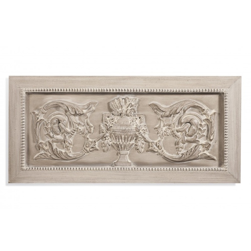 Rustic embossed architectural wood panel with weathered Gray finish giving the appearance of a found vintage item.