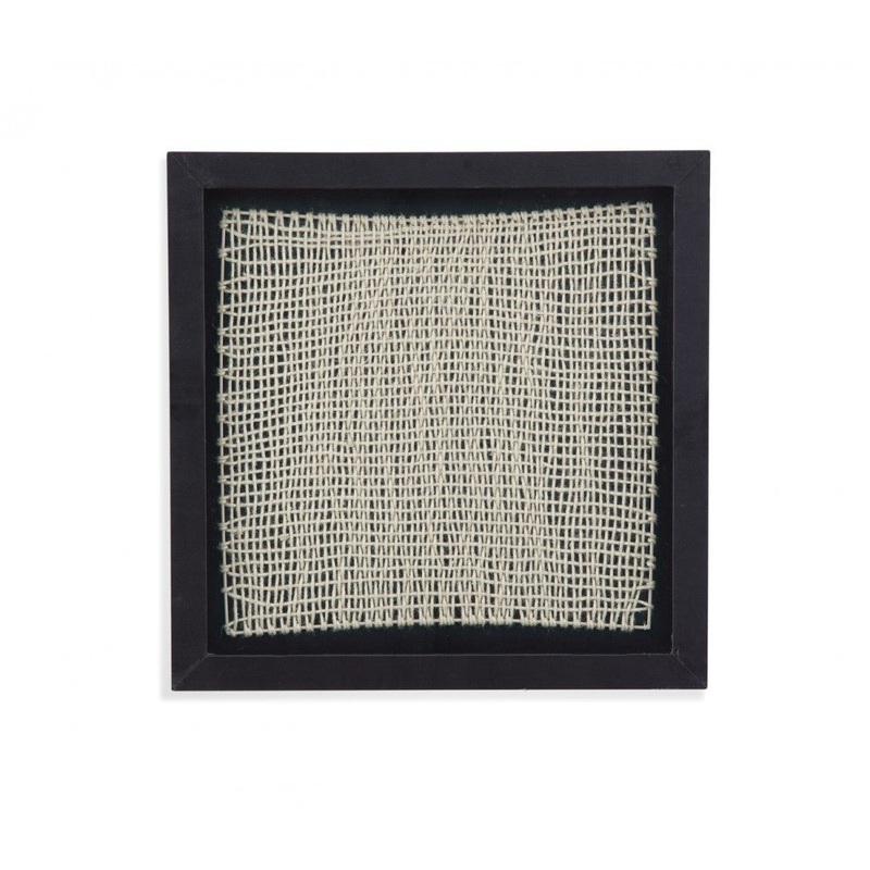 AttributesFinishColorMaterialBlackBlackCanvasDescriptionWoven Wall Art is uniquely crafted piece of art featuring woven jute in a geometric pattern framed in a shadow box under glass in a black frame. D-ring or sawtooth picture hanging hardware included.Di