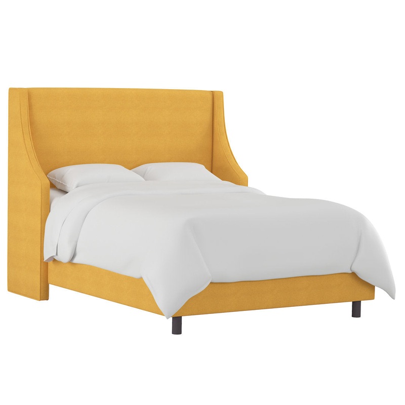 This modern bed frame brings classic style with a modern silhouette to your main bedroom. Crafted from a solid and engineered wood frame, this bed is upholstered in a polyester and linen blend fabric available in a range of colors. A high panel headboard showcases a wingback touch with recessed sides framing either side of your bed for a cozy feel, with low sideboards and piped edges for a tailored look. We love that the foam filling provides a cushioned place to lean against. To complete it, just add a box spring and mattress of your choice (sold separately). Mercury Row Color: Classic French Yellow Linen, Size: Full/Double