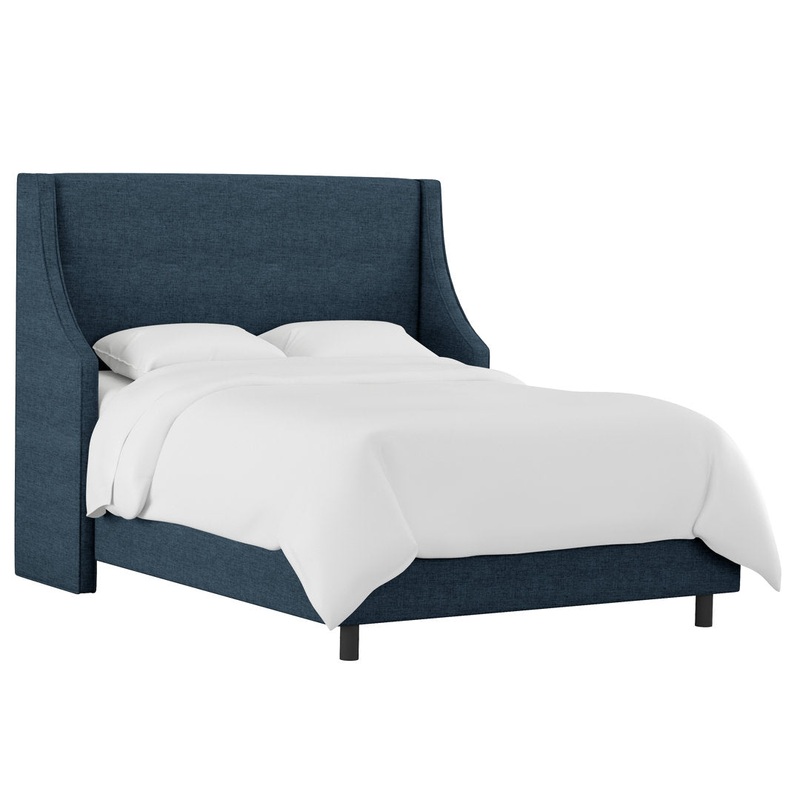 This modern bed frame brings classic style with a modern silhouette to your main bedroom. Crafted from a solid and engineered wood frame, this bed is upholstered in a polyester and linen blend fabric available in a range of colors. A high panel headboard showcases a wingback touch with recessed sides framing either side of your bed for a cozy feel, with low sideboards and piped edges for a tailored look. We love that the foam filling provides a cushioned place to lean against. To complete it, just add a box spring and mattress of your choice (sold separately). Mercury Row Color: Zuma Navy Textured Linen, Size: California King