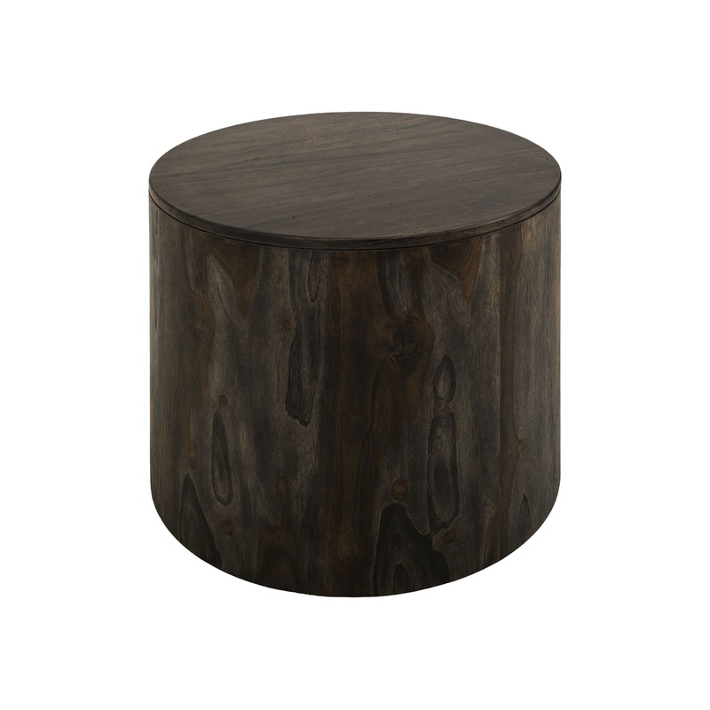 End Table. Our Balam occasional tables are handcrafted from mango and teak wood. This simple yet stunning collection will bring an organic, modern touch to your space. The End table features a minimalist cylindrical design with sleek lines and a smooth surface. It is a perfect addition to any room, adding both functionality and modern style.