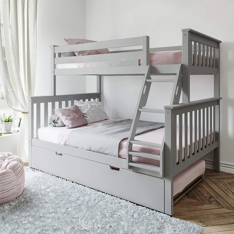 Solid 100% knot-free, New Zealand pine wood construction and the flexibility to convert these bunks into separate beds set and bunk beds apart. A sleepover classic, the included trundle provides additional bed space and rolls on casters. Harriet Bee Size: Twin over Full, Bed Frame Color: Gray