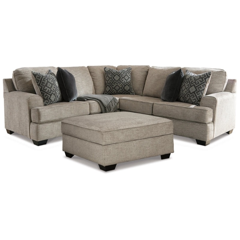 Whether your style is clean and contemporary or cozy modern farmhouse, this sectional and ottoman in a stone-tone neutral upholstery brings your vision to life. Merging ultimate comfort with striking good looks, this chic set includes coordinating accent pillows and provides hidden storage within the ottoman.
