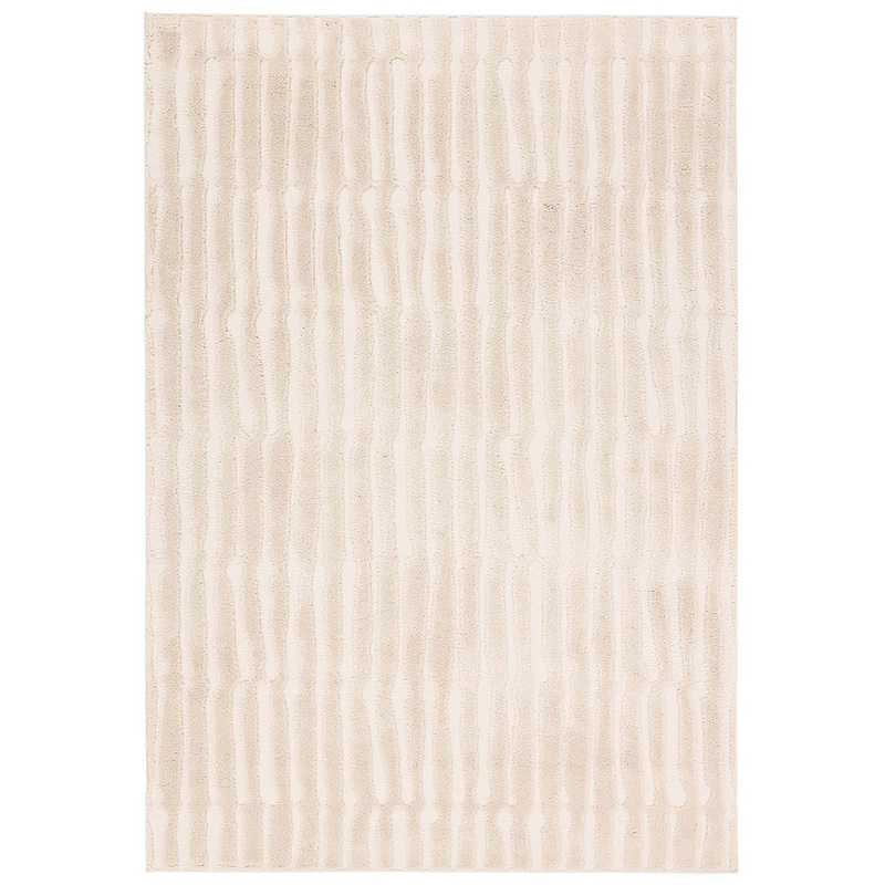 Luxurious texture awaits with the Terza area rug from Nikki Chu by Jaipur Living. This highly adaptable interior accent is part of the Calix collection, a series of glam-forward area rugs made from practical materials that provide dependable performance in active placements.Nikki Chu is an author and celebrity interior designer whose adventurous aesthetic draws inspiration from all over the globe. Jaipur Living has transformed her signature aesthetic into a series of rugs that anyone can enjoy.This contemporary area rug features an irregular stripe design expressed in high-low pile construction, giving the surface a rich topography to admire. Light beige coloration ensures easy coordination with so many decor themes.Each rug in the Calix collection is power-loomed and finished with tightly serged edges. The blended synthetic rug pile is made from polypropylene and polyester for excellent resistance against staining and wear. Low-profile pile allows for easy cleanup.Blot spills immediately using a dry white cloth or a clean sponge. Vacuum using a suction-only setting. Rotate annually.