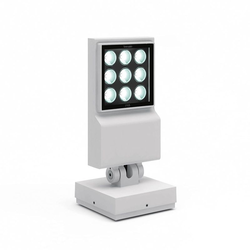 The Ceifos Outdoor Light can be used as a wall, ceiling or floor light. Composed of an aluminum body and terminal board. The Ceifos Outdoor Light is adjustable, featuring a base that rotates up to 180 and body tilting up to 90 which can be locked by dowels. Electronic driver is integrated into the body.