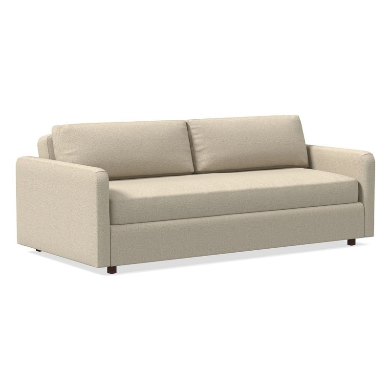 Sustainably-sourced wood frame.High-gauge sinuous springs provide cushion support.Seat cushions have fiber-wrapped, high-resiliency polyurethane foam cores.The back cushions are fiber filled.Fixed seat cushion; loose, reversible back cushions (Astor Velvet excluded).Easily convert sofa to bed by lifting frame and folding the back down via click clack mechanism.Accommodates Twin-sized fitted sheets (sold separately).Seat lifts up via gas-lift mechanism to reveal hidden storage space.Removable legs.Your purchase of this FSC-certified product helps support forests and ecosystems worldwide. Learn more.This contract-grade item is manufactured to meet the demands of commercial use in addition to residential. See more.Imported.