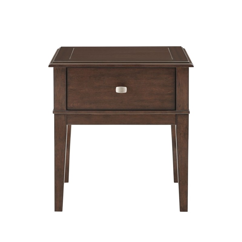 The versatile design of the Claremore Collection is a unique blend of function and form, creating a classic occasional table group for your homes living room. The end table of the collection features USB charging, single drawer storage, and leg base. The collections birch veneer is finished in brown as a neutral complement to your living rooms dcor.