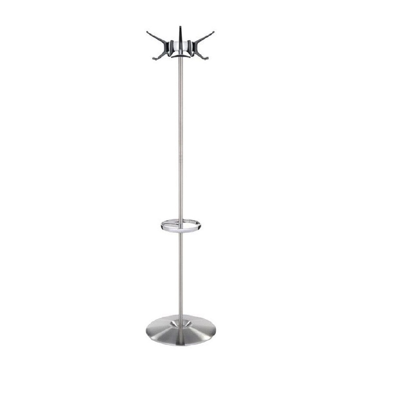 Thanks to the refined combination of colors and finishes, and to the flexibility of the project (the single clothes-hanger hooks are mobile and allow greater freedom and practical use), this clothes-hanger collection joins perfect elegance and functionality. The clothes stand, with attached umbrella ring, comes in brushed aluminum or metallized black finishes. Hooks are available in five different colors.