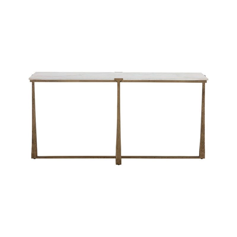 Experience the timeless allure of the Cowell Console Table from Sunpan. Inspired by mid-century design. this console table features a chic, minimalist aesthetic with powder-coated antique brass legs and a cool white marble top with unique natural markings.