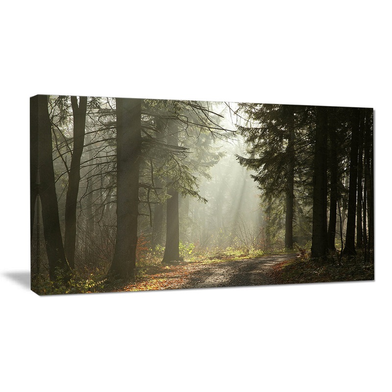 Dark Green Forest with Sun Rays – Photograph Print on Canvas Design Art Size: 30″ H x 40″ W x 1″ D