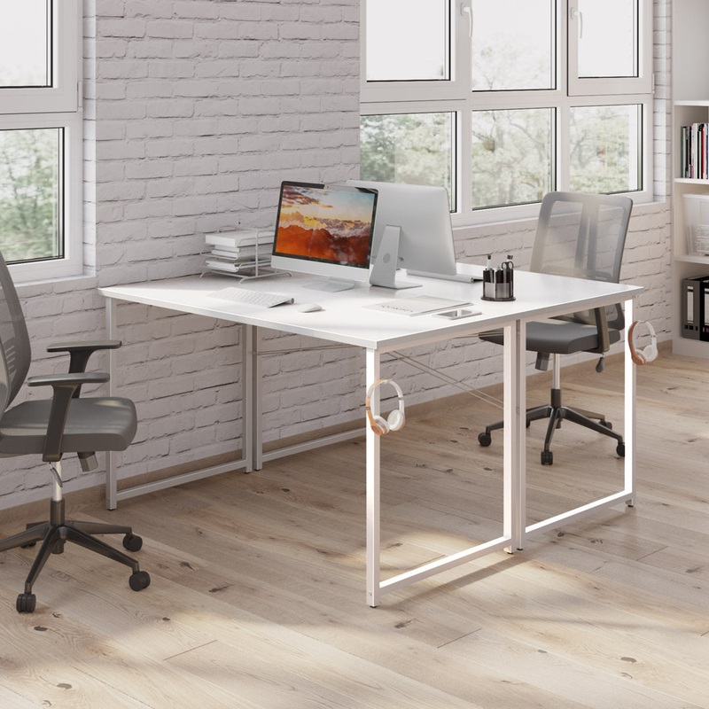 Computer writing desk, school student desk, home office desk for small space, study kids desk with headphone hook. 17 Stories Color (Top/Frame): White/White, Size: 29.13″ H x 47.24″ W x 18.89″ D