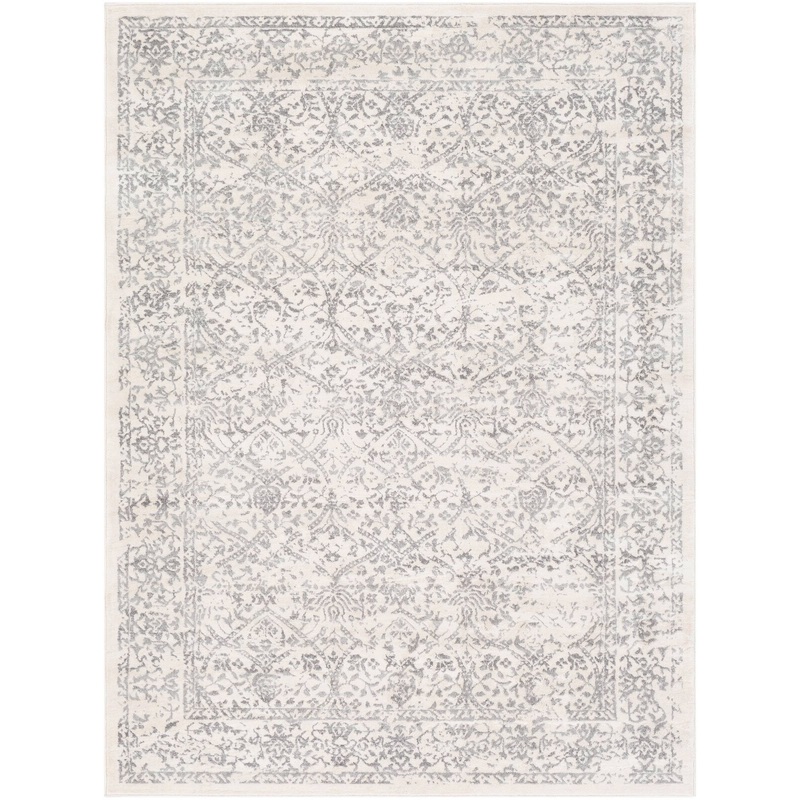 With its light gray, damask pattern over an ivory background, this Oriental rug fits right in with the French country cottage and modern farmhouse aesthetic. It’s power-loomed in Turkey from polypropylene and features a purposefully faded finish for a vintage-inspired look. Although it has a medium 0.31″ pile, this piece performs best when paired with a rug pad to add cushion and prevent sliding underfoot. Use this rug to center your dining room or to add coziness to your bedroom.FeaturesIf a product contains temporary creases upon first unrolling, reverse roll the rug in both directions (width and length) to alleviate. If stubborn creases still persist, let the rug sit reversely rolled for a few additional hours or overnight. Any small wrinkles will fall out over a short time once placed.Due to the difference of monitor colors, some rug colors may vary slightly. We try to represent all rug colors as accurately as possible.