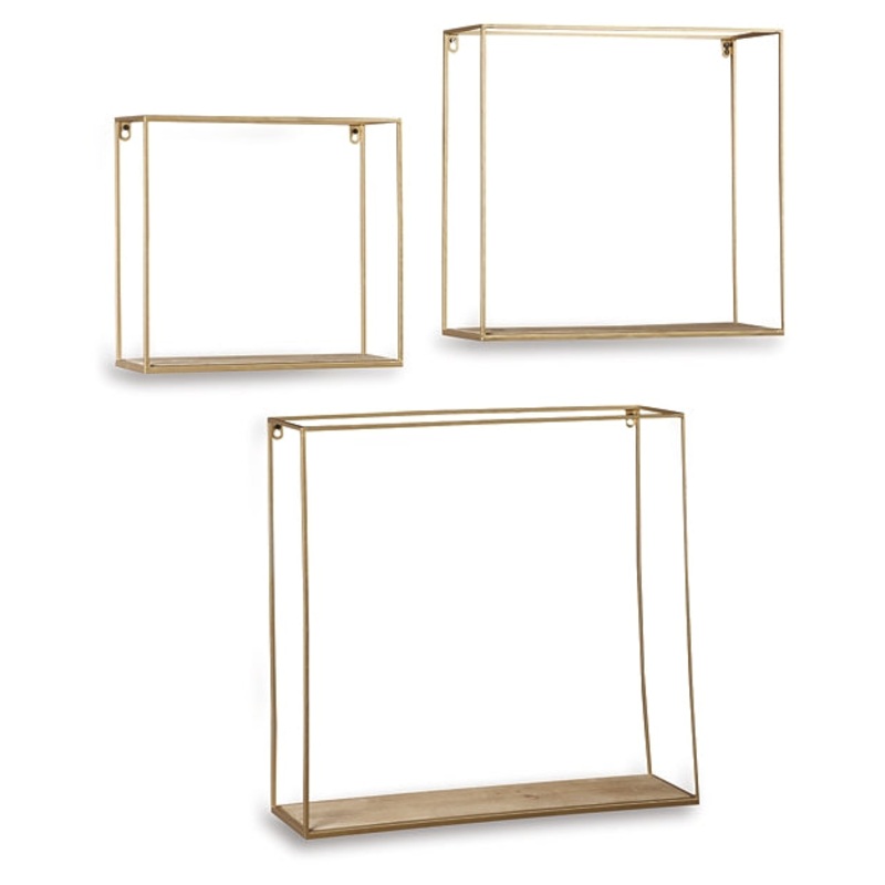 This 3-piece wall shelf set creates multi-dimensional appeal on your wall. Its linear design is elevated with an unexpected fashion-forward combination of goldtone metal and natural wood. Varying sizes give you the freedom to showcase what you want, where you want.