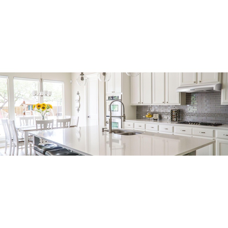 Nemi sports a slender 5″ height and soft curves, designed to modernize and perfectly fit kitchens where space is premium. Nemi features a 3-speed, 280 CFM internal blower, which provides sufficient ventilating power for most kitchens. The backlit push button controls allow for easy adjustment of blower speeds and dual LED lamps. A single dishwasher-safe anodized aluminum mesh filter is easy to clean. Available in 30″ or 36″ widths, Nemi is designed for standard ducted installation and can be installed as a recirculating system, using the Recirculating Kit, available as an accessory.