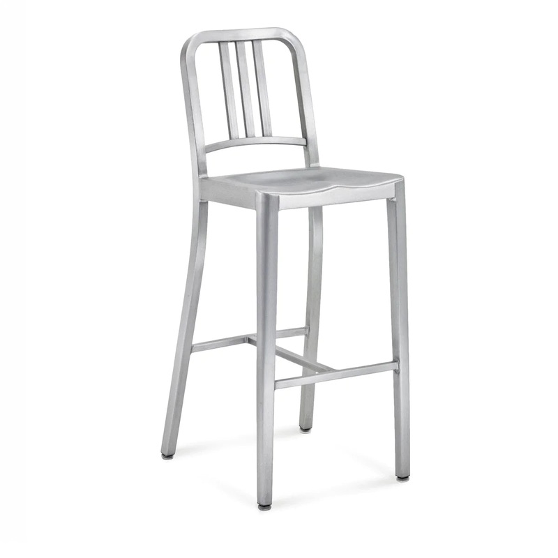 The original. The 1006 Navy chair was originally created in 1944 for the US Navy as a lightweight, non-corrosive, fire resistant and super strong chair for ships and submarines. All chairs and stools are still built by hand from recycled aluminum in Hanover, Pennsylvania. Outdoor approved. Small carbon footprint.Guaranteed for life.Standard glides: soft plastic TPU glides for all-around use, including outdoor use. Alternative glides available at an upcharge.