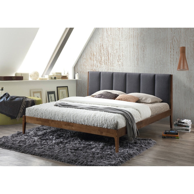 Featuring clean lines and flawless craftsmanship, this bed is a masterpiece of Scandinavian-inspired furniture. Bed frame, constructed of solid rubberwood in earthy tone walnut finishing matching with panel-tufting cushioned headboard this light and bright, Danish-influenced look speaks for itself. Upholstered in dark gray polyester fabric with exceptional softness and durability, this bed exudes a luxurious style in your bedroom sanctuary. Tapered and shaped Scandi-style legs complement the design of the bed while providing a stable base. To ensure a comfortable nights sleep, the traditional slats of the base have been closely spaced to provide firm support that suits standard-size mattresses. Wade Logan Color: Dark Gray, Size: King