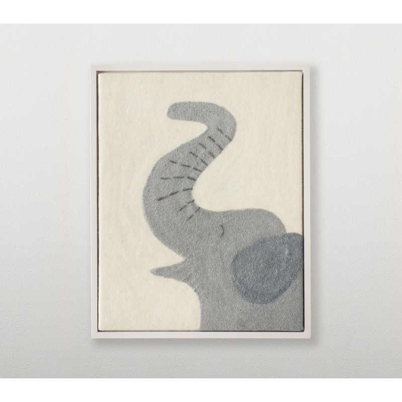 Handcrafted with Nepalese wool felt and whimsical details, our charming elephant portrait is as soft as it is sweet. Its framed without glass, so the inviting textures are easy to touch.DETAILS THAT MATTERArt surface is made of wool felt from sheep from Nepal.Frame and backing is made of MDF.Frame features a finish in an oil-based, matte Simply White.Can be hung vertically only on a flat surface.D-ring mounting.Made in a Fair Trade Certified factory, supporting fair and safe labor practices and empowering workers to invest in their communities.KEY PRODUCT POINTSPottery Barn Kids exclusive.Hardware is included (anchors and screws).Wipe clean.Imported.