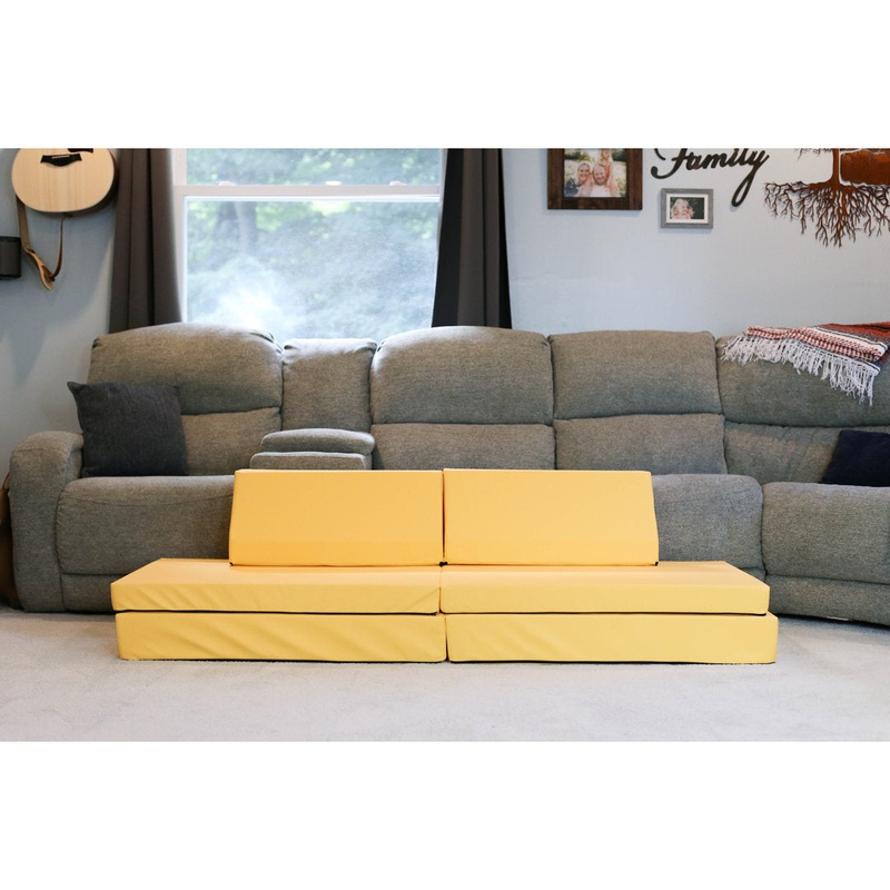 Furniture meets active play: Equal parts furniture and active play set, the blocky is the couch made with kids in mind. Each block includes two folding bases and two wedge cushions, and the sky is the limit for how theyre used! Foamnasium Color: Enhanced Blocksy Marigold