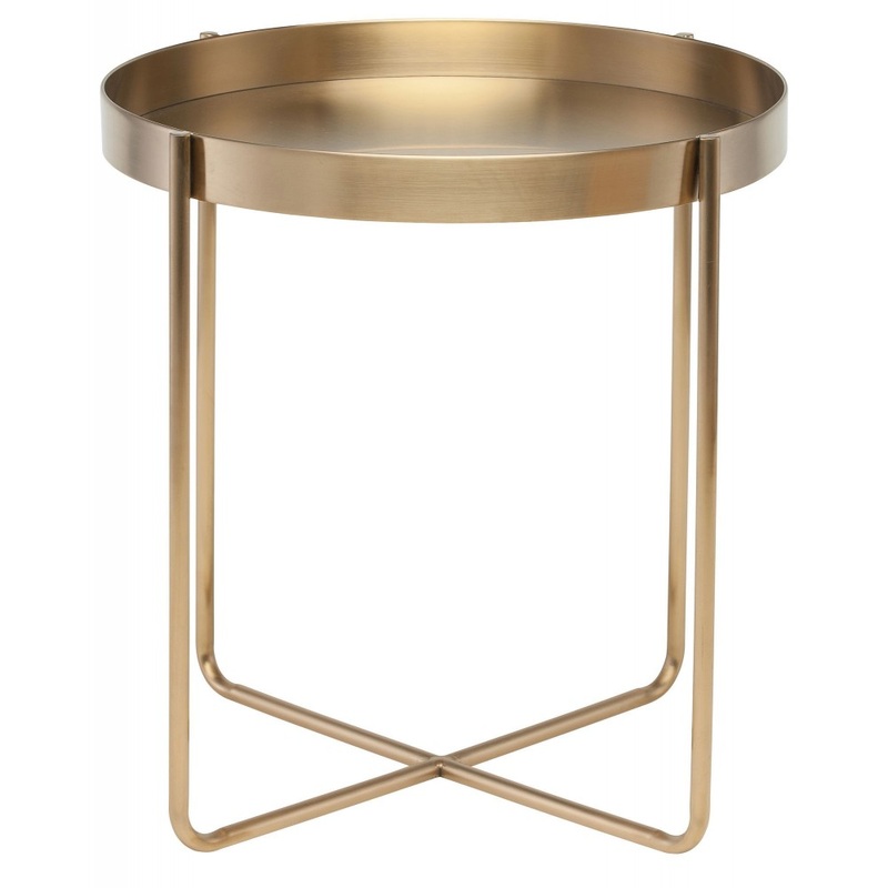 The Gaultier side table projects a refined sophistication highlighted by an emphasis on purity of form. Finely crafted from lightweight gold brushed stainless steel, the Gaultier radiates lightness and grace.