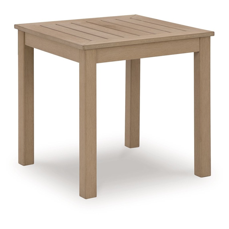This end table is a beautiful addition to any outdoor living space. Effortless in its simplicity, this piece echoes your easygoing sensibilities. Combining durable, cutting-edge engineered materials, its Weatherwood construction in a blond wood color enhances the contemporary design. Pair this table with the matching sofa and chairs for a spectacular backyard or patio seating arrangement.