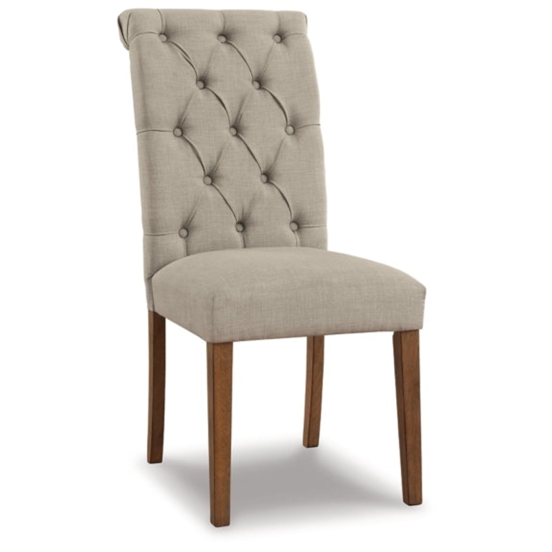 Simple sophistication is closer than ever with this set of 2 dining chairs. The chair is delightfully cozy with its beige upholstered seat and carefully tailored button-tufted back, while the rolled top rail provides a little extra flair. The legs are finished in a neutral light walnut color for the finishing touch to this charming chair.