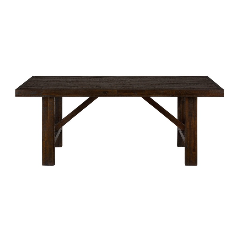 Whether you’re hosting one of your famous holiday meals or need a comfortable place to enjoy a last-minute meal before a late-night football game, a traditional farmhouse dining table always works well at the center of it all. Carefully crafted with stylized block legs and a rustic dark chocolate finish, this table has the kind of warmth that will make family and guests want to linger a little longer in the dining room or kitchen for another slice of pumpkin pie. Its built from solid acacia wood and has a spacious rectangular tabletop surface that comfortably sits up to eight guests. Why dont you think about layering in something distressed (like a floral Oriental-style rug) for a space that looks lived-in? Something to remember: Youll need to assemble this piece once it arrives, but we’ve included all the tools you’ll need to put it together. And when it comes to upkeep, we recommend wiping it down with a soft, dry cloth. Loon Peak