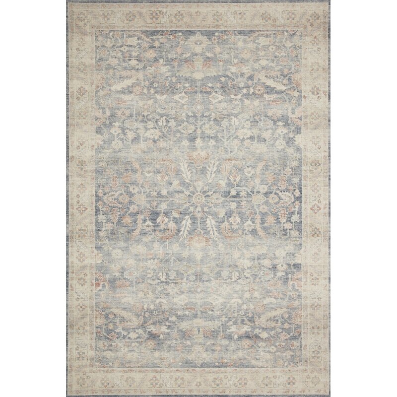Featuring a classic Oriental-style design with intentional distressing throughout, this area rug is ideal for adding a touch of timeworn charm to any space. Machine-made using a power loom, its crafted from durable polyester. Its 0.25 pile height makes it a great choice for a variety of spaces throughout your home, even high traffic areas like the entryway or living room. Best of all, its safe to use with heated floors. This area rug performs best when its used with a rug pad (not included) to reduce shifting and sliding.FeaturesClean spills immediately by blotting with a clean, dry white sponge or cloth. An appropriate rug pad is highly recommended on all surfaces to prevent slipping, add cushion, and improve durability. Expect shedding. Vacuum regularly. If your vacuum has variable power settings, set on low. Vacuum the full length of the rug, turn, and repeat on the next area, rather than using a back-and-forth motion.Product DetailsTechnique: Power LoomConstruction: Machine MadeMaterial: PolyesterLocation: Indoor Use Only