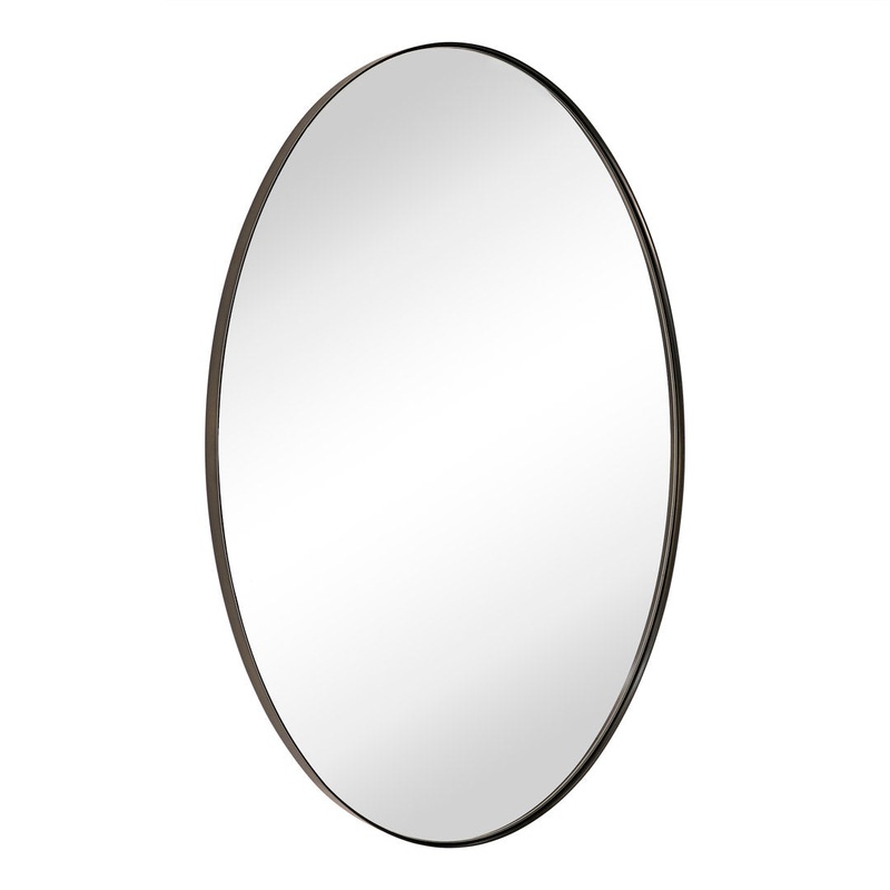 Edged in a premium stainless steel frame, this oval mirror curves an elegant and modern silhouette. Designed in multiple dimensions and colors, making it a perfect contemporary mirror for any room. Ebern Designs Finish: Oil Rubbed Bronze, Size: 36″ x 24″