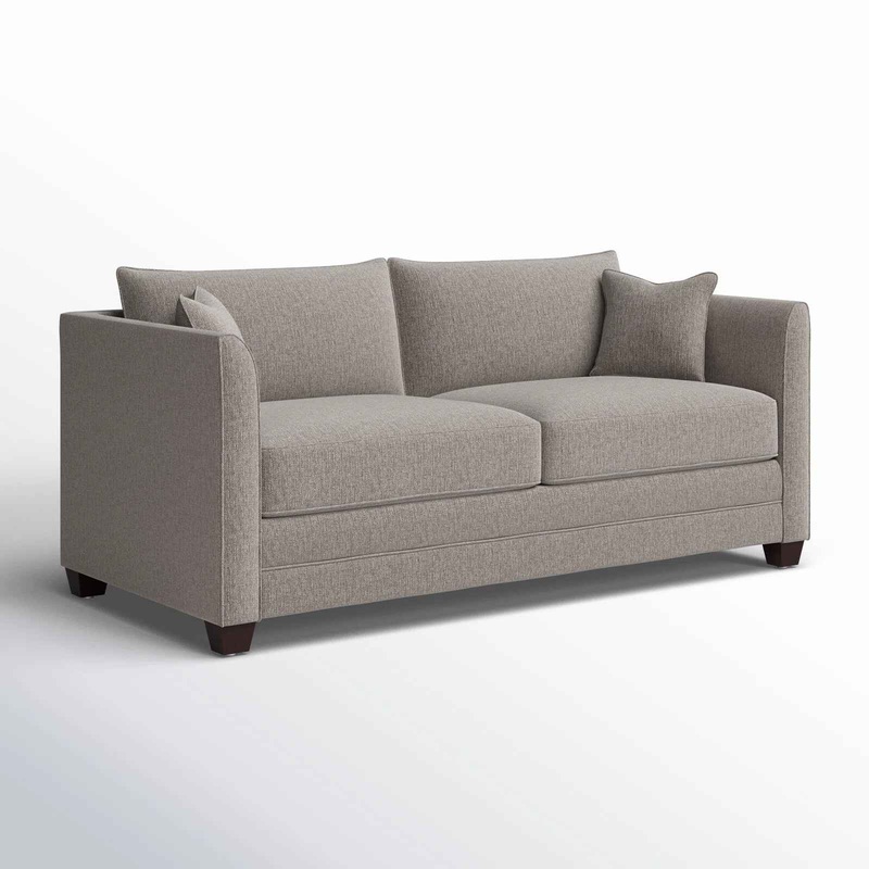 Custom made to order: Anchor your living room seating group with this sleeper sofa, featuring a classic square-arm silhouette and cushion backs. It extends to a queen-sized bed that’s just right for overnight guests. Made in the USA, it has a solid and engineered wood frame and rests on short, tapered black walnut-finished legs. This sofa bed is wrapped in a polyester blend fabric, with foam-filled cushions that are supported by sinuous springs. We love the numerous neutral upholstery hue options that complement your room’s style and color scheme. It comes with two toss pillows for another layer of texture. No assembly is required. Hand-curated by Kelly Clarkson.What’s Included?2 Toss Pillow(s)