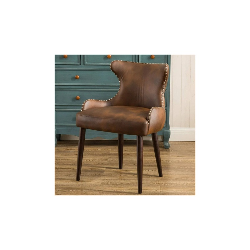 This accent chair brings a rustic touch to your bedroom, living room, or reading nook. It's made of engineered wood with an espresso finish and faux leather upholstery. This chair features a curved wingback silhouette with low-sloped arms and silver nailhe