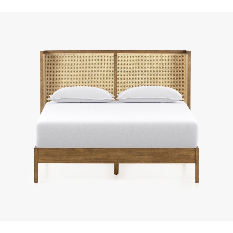 Masterfully crafted from solid rubberwood, veneers, MDF and natural cane in a Toasted Parawood or Ebony Black finish.Slat-roll support system.Bed is designed for use without a box spring.MDF is an engineered wood that lends exceptional strength and ensures the product’s structural integrity over time.Kiln-dried wood helps prevent warping, splitting, cracking and developing mildew.The use of veneers results in high-quality furniture that has flawless surfaces and consistent color tones that will not be subject to cracking.Mortise-and-tenon joinery provides exceptional structural integrity.Compatible with an adjustable mattress base.Complete your bed. Shop our favorite mattresses.Imported.CAREDust with soft, dry cloth.Keep away from direct sunlight.Hardware may loosen over time, periodically check connections and re-tighten if necessary.We do not recommend using harsh household chemicals as they can damage the finish.ASSEMBLYAssembly required.White Glove Service: Items are delivered to your room of choice by appointment, then unpacked and fully assembled by a skilled two-person team. Includes packaging removal and recycling. Fee varies by location and order total.