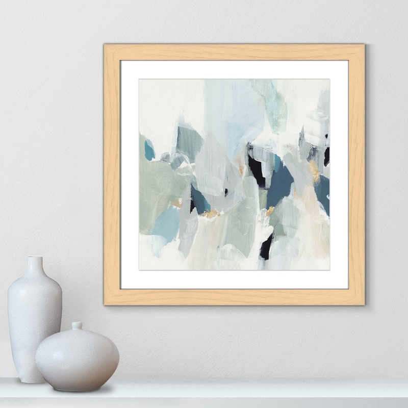 Little Talks II combines abstract splashes of blues and cool earthen tones to provide an understated pop of artistic expression to any space. This image blends well adding a pop of color and brightening up an existing space. Casa Fine Arts Size: 25″ H x 25″ W x 1.25″ D, Format: Natural Picture Framed Paper