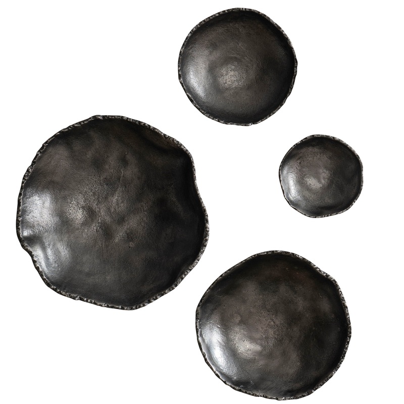 Handcrafted From Aluminum, These Outdoor Metal Wall Bowls Feature Noticeable Textural Elements With Organic Edge Details And Are Finished In Antiqued Nickel. May Be Hung On A Wall With Keyhole Hangers, Or Displayed As Tabletop Accessories. Sizes: Sm-5x5x1, Med-7x7x2, Lg-9x9x2, XL-11x11x3