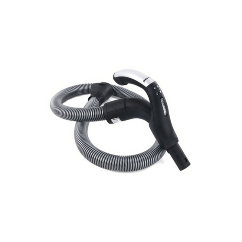 This crushproof electric hose fits Miele S8 Uniq vacuums, Complete C3 Brilliant SGPEO and Complete C3 Homecare+ model. . It has an on/off button for the power head and vacuum motor. The +/- buttons are for suction control.