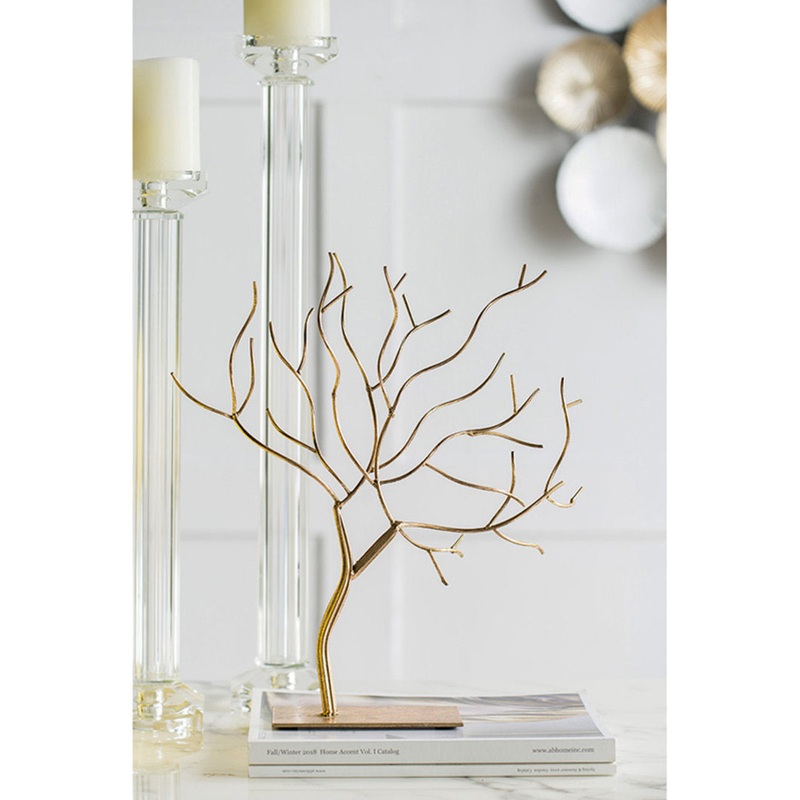 This tree statue completes your space’s decor with an organic feel. It’s crafted from iron in a shining gold hue. The botanical design features a rectangular base, grounding the elegantly curving trunk with bare wire branches reaching out and waving. We love that it measures nearly 10” wide and 15” high, so it’s the perfect size to fill an empty end of a sideboard or buffet table in your living room, bedroom, or dining room. Lark Manor