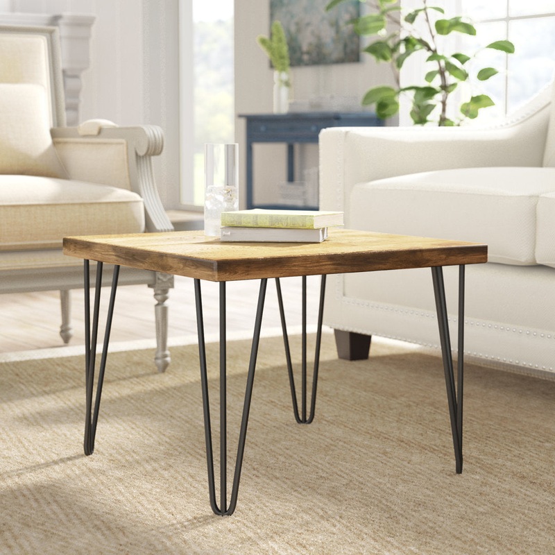 Is the seating ensemble feeling empty? Try a coffee table! Not only do they anchor your space, but they offer room to stage a display and serve up trays of treats when you find yourself entertaining. Take this one for example: Founded atop four curved iron legs in a neutral black finish, it features a square tabletop made from reclaimed solid wood in a natural wood-grain coloring for a look that complements any industrial- or modern farmhouse-inspired space. Gracie Oaks